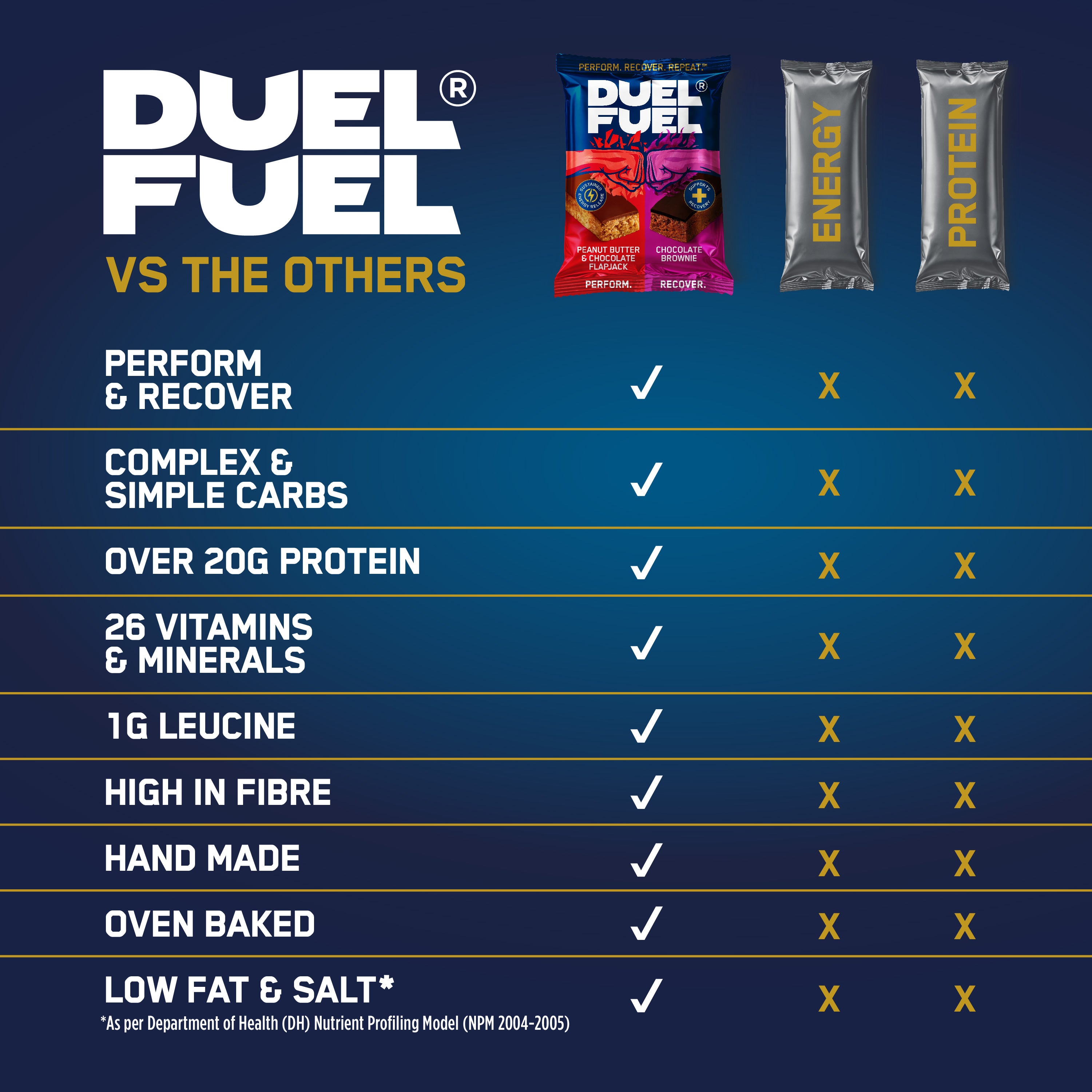 • Strategic Macronutrient Fuelling for Peak Output: Our high-carbohydrate flapjack ignites your pre-workout power, ensuring immediate and sustained energy output. Post-session, our high-protein brownie delivers the precise fuel for brutal muscle repair and accelerated rebuild, enhanced by a potent dose of Leucine, the key amino acid for kickstarting muscle protein synthesis. We also include a balanced fibre profile to support overall digestive health and sustained energy, without compromising performance during intense periods.